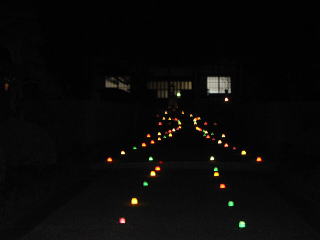 ろうそくと色和紙による ほのかな明かり を参道に並べ、年越し2年参りを演出しました。