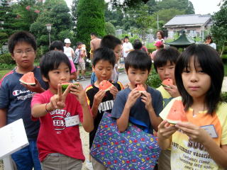 緊張も解け、みんな冷た〜いスイカに舌鼓!!